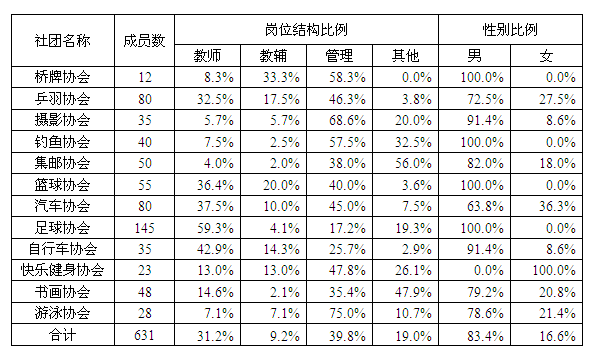 表1-1 江苏科技大学教职工社团岗位结构、性别比例一览表