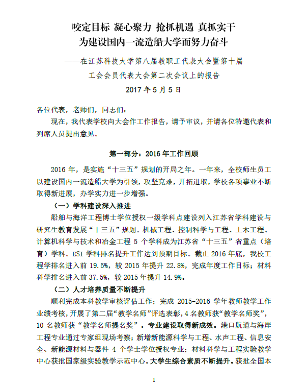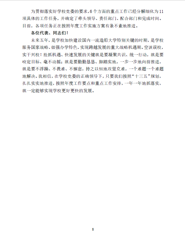 第八届教职工代表大会暨第十届工会会员代表大会第二次会议校长工作报告